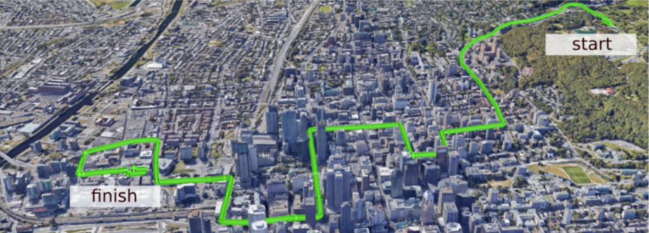 数据收集路线概览:由Google Earth获取的3D城市景观