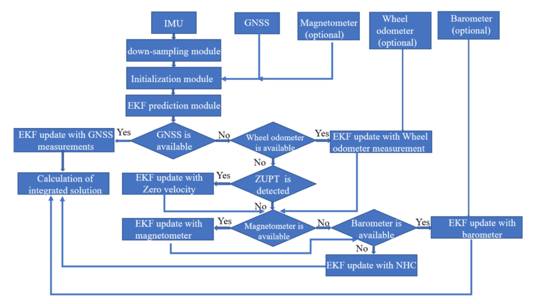 《物联网相关应用和用于陆地车辆的无系留定位及导航解决方案》一文中提出了物联网相关应用和陆地车辆的无系留定位及导航解决方案。由于信号阻塞和衰减,频繁的周跳和卫星几何形状差,GNSS解决方案的准确性会降低。这种情况在诸如市中心的核心区域、隧道和有盖停车场等恶劣环境中普遍存在。PPI开发了一种新的惯性导航技术Un-tethered Fusion+来解决这个问题。Fusion+是一个独立的系统,能够处理原始IMU测量数据,并将其以松散耦合(LC)的方式与GNSS的位置和速度集成,而无需车辆所需的额外传感器,如速度或电子罗盘。虽然Fusion +的开发是为了选择性地接受和使用GNSS以外的多个更新源,但并不是必需的。本文严格依据IMU读数和GNSS呈现Fusion +的结果,展示了Fusion +在长时间GNSS信号中断时仍可以实现的精准性。